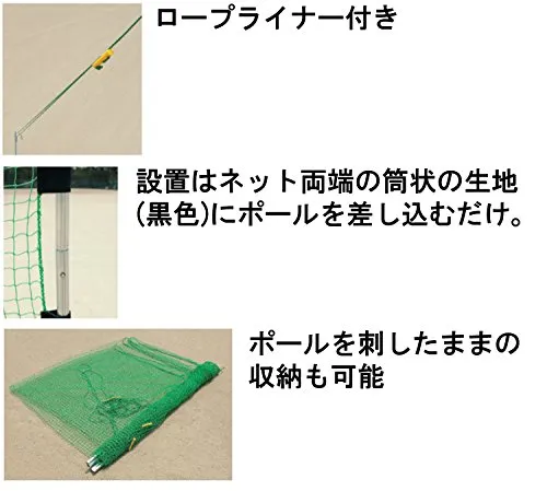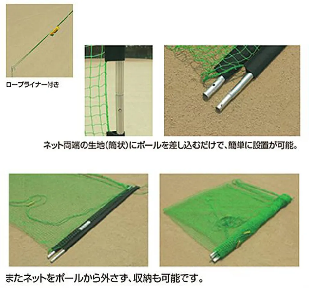 ネットの両端の生地(筒状)にポールを差し込むだけで、簡単に設置が可能。