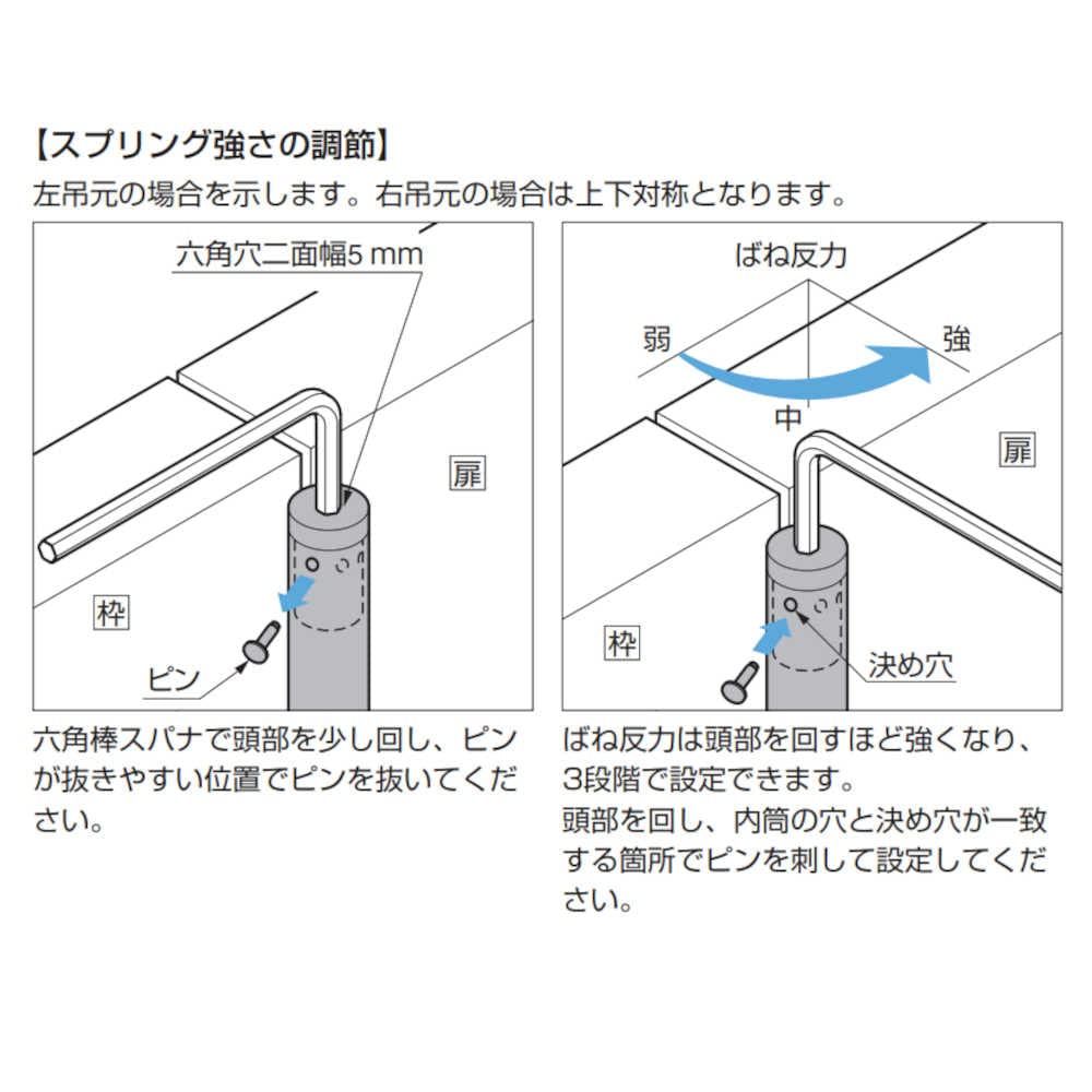 ばね反力の強さを六角棒スパナで3段階で調節できます。