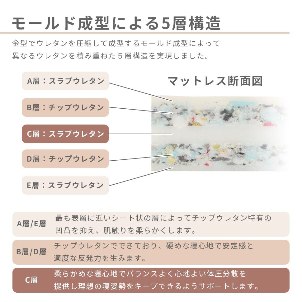 新品 セルタン 丸いフォルムの5層構造三つ折りマットレス シングル 厚さ6cm アイボリー A1384a-a-252IV