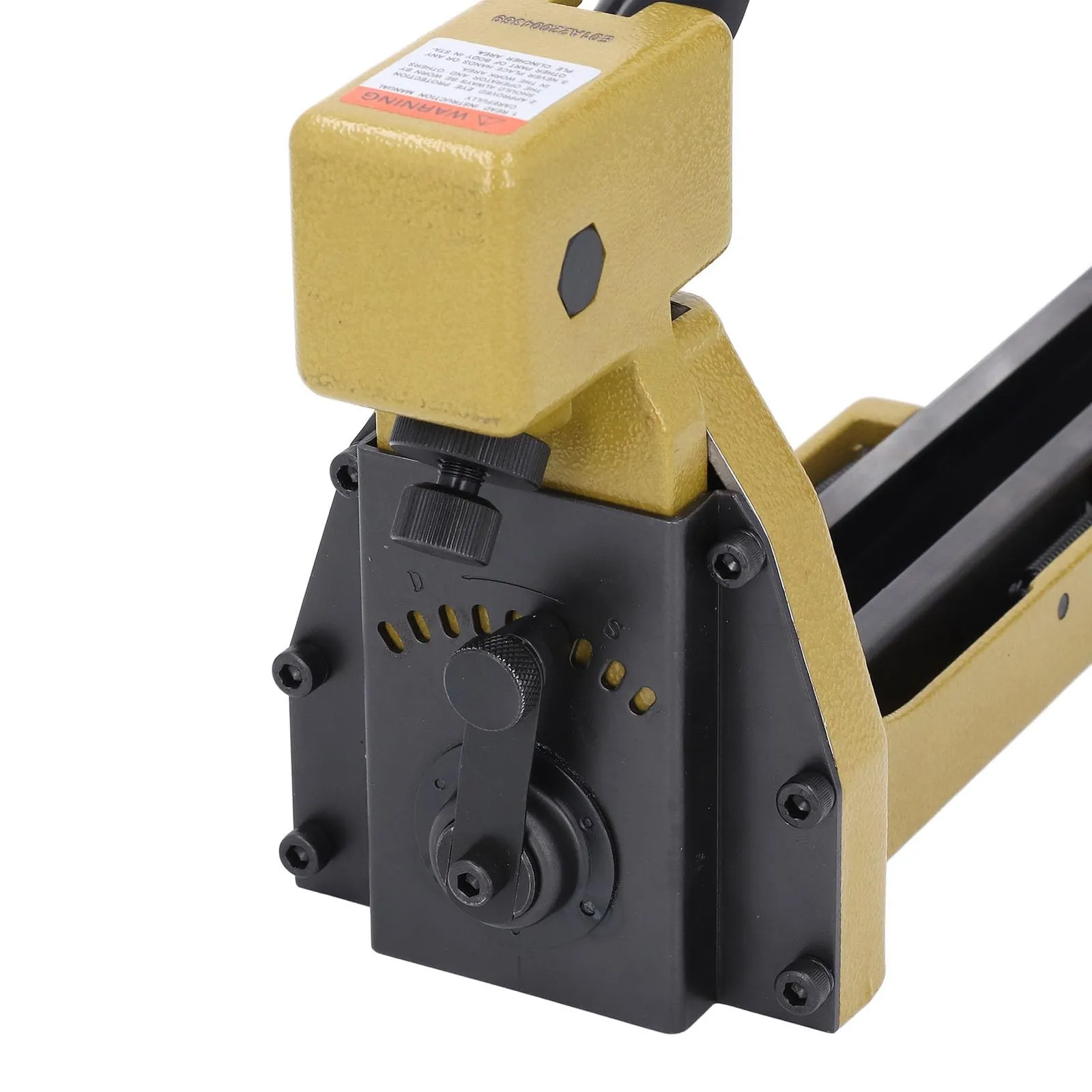 【手動ツール】:エアコンプレッサーや電源不要の手動式カートンステープラー。どこでも気軽に使用でき、現場作業に最適