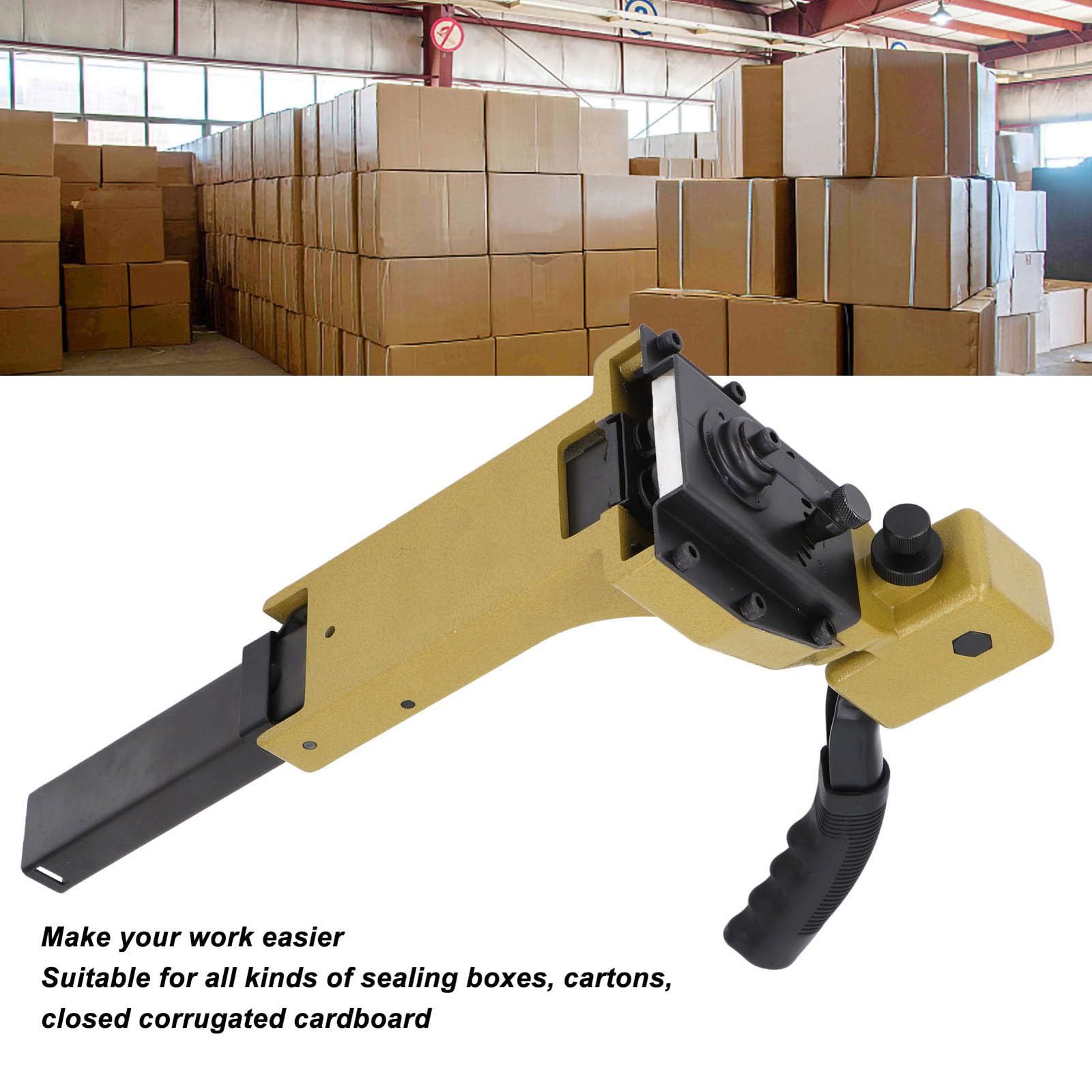 【耐久性構造】:頑丈な素材を使用したカートン閉鎖ホッチキス。過酷な繰り返し作業にも安定して対応