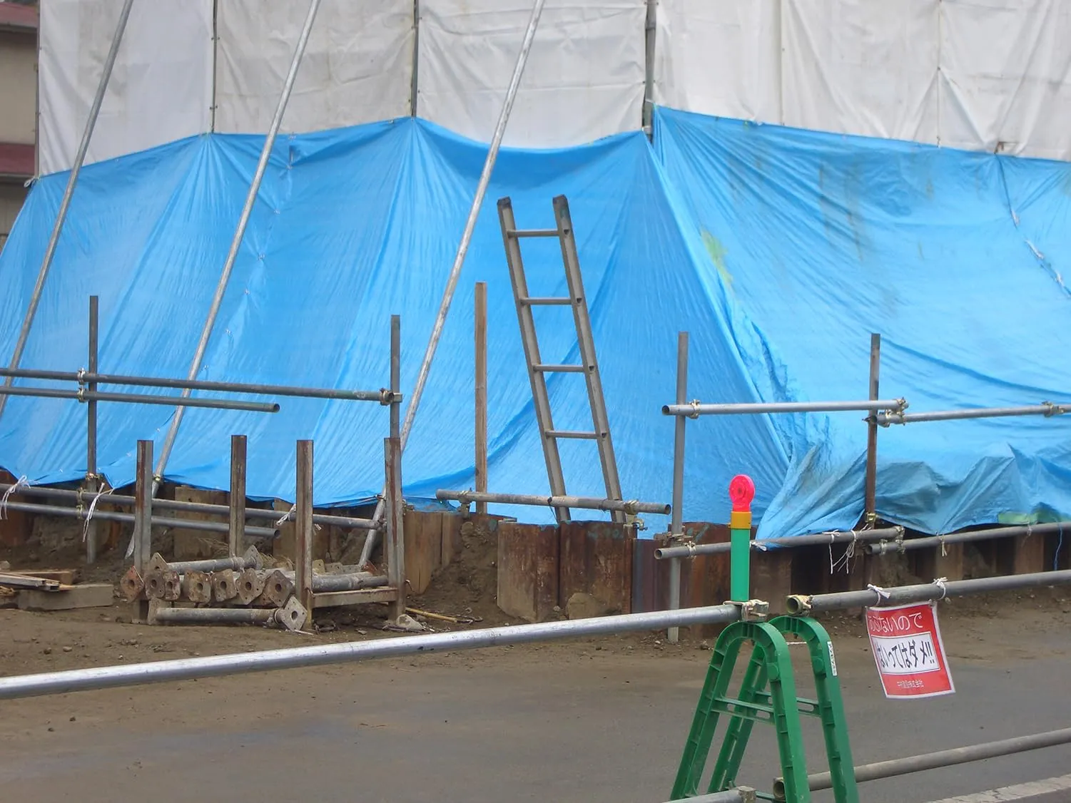 雨除けなどの野積みカバー、屋根補修用カバー、土木・建設・建築などの天井面、壁面、床面の養生