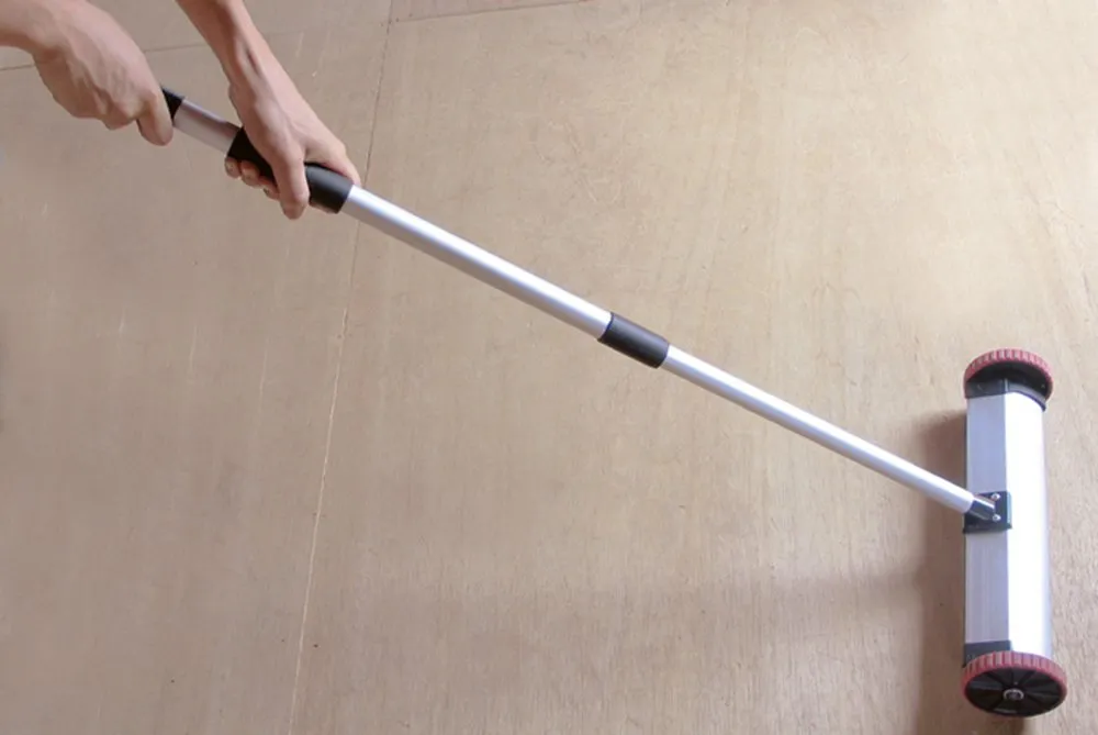 手元のレバーを引くだけで吸着物が離れるワンタッチOFF機能付。キャスタ付で床の清掃ラクラク。散乱したねじやボルトなど金属片の清掃に。