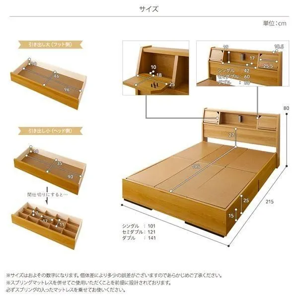 ベッドフレームには必ず厚さ15cm以上のスプリングマットレスを乗せてご使用ください。