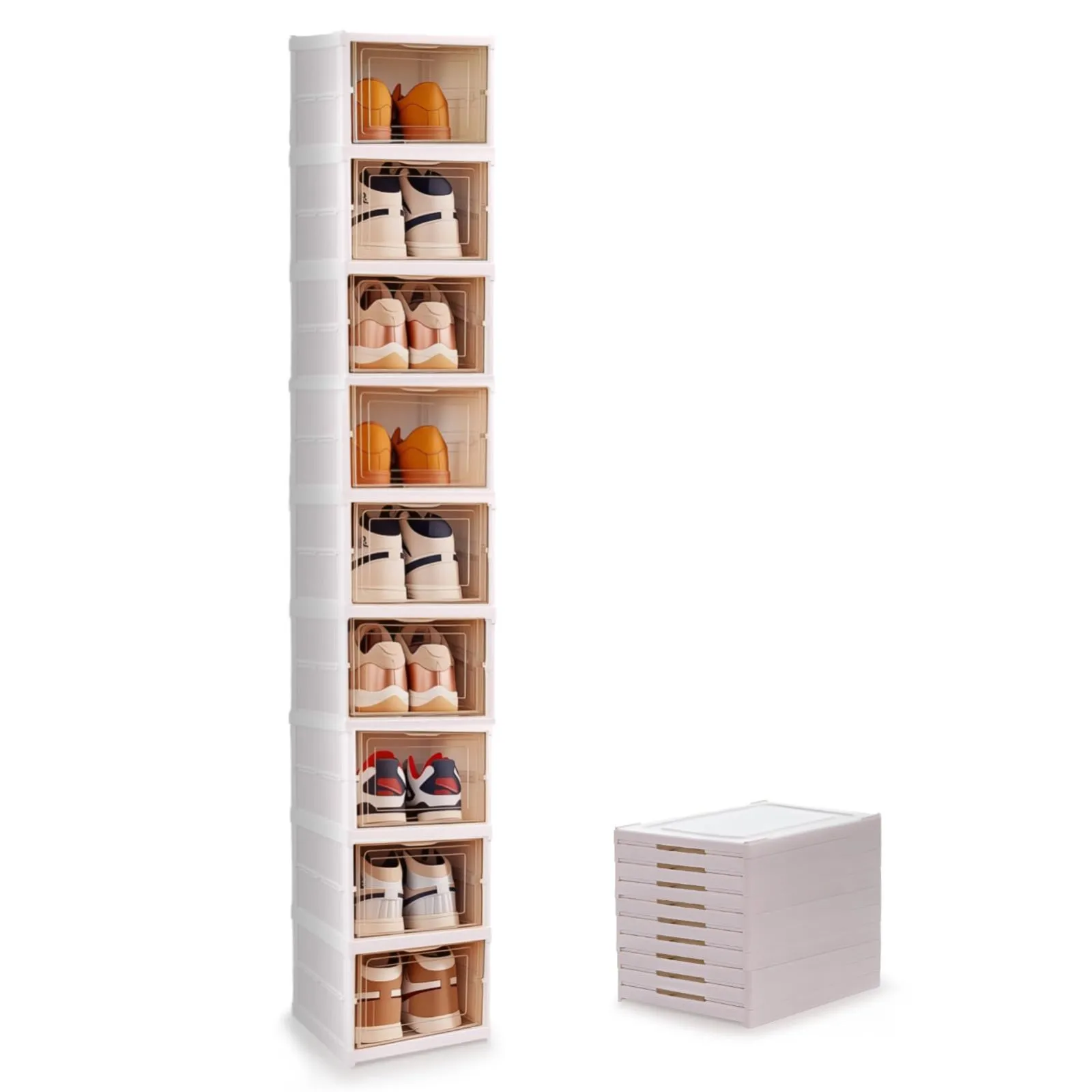 FYY シューズボックス 折りたたみ式 靴箱 9段 シューズラック スリム 工具不要 靴 収納 省スペース 大容量 PP材質 積み重ね可能 玄関 靴収納スリム 折り畳み 収納ボックス