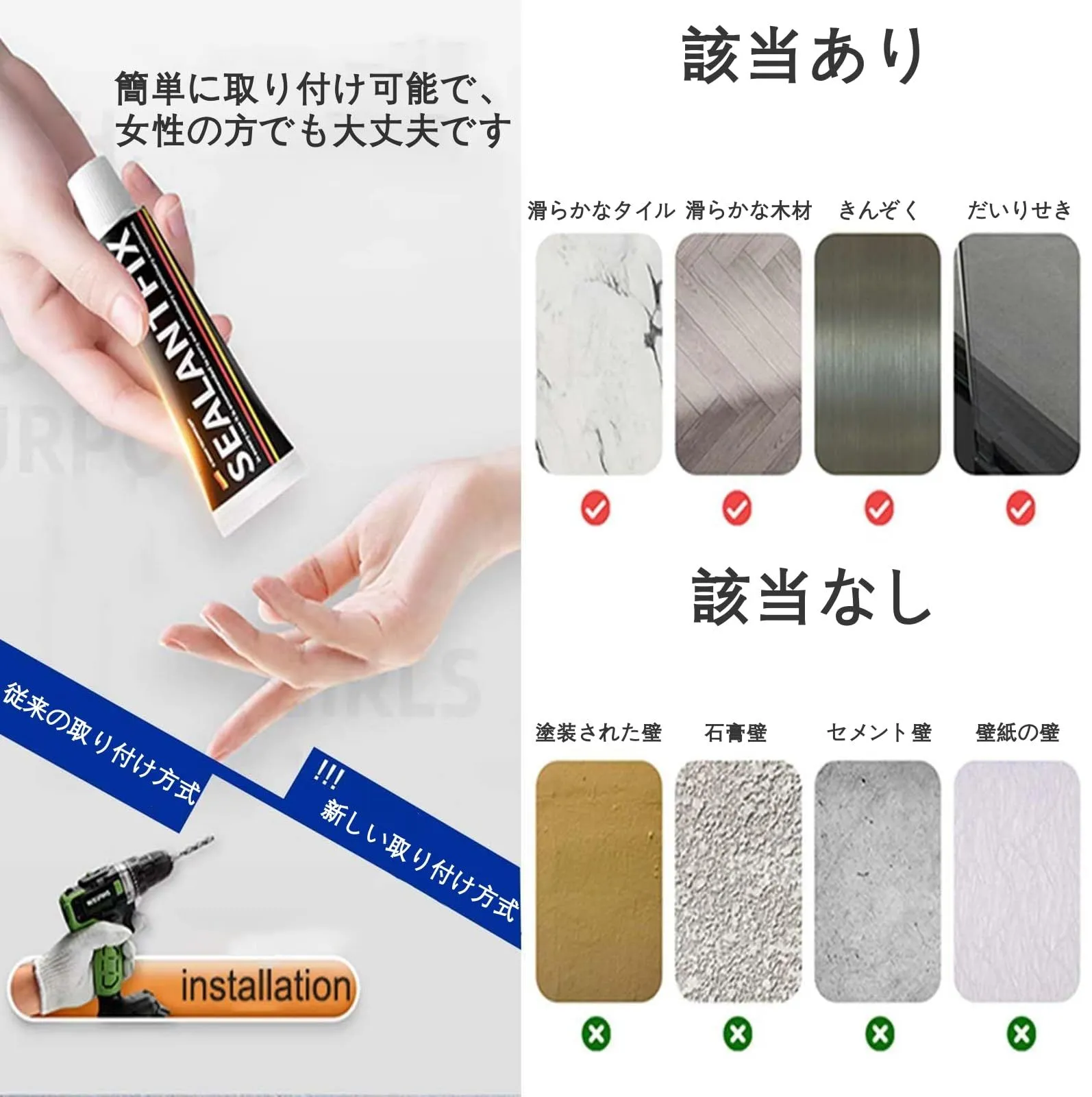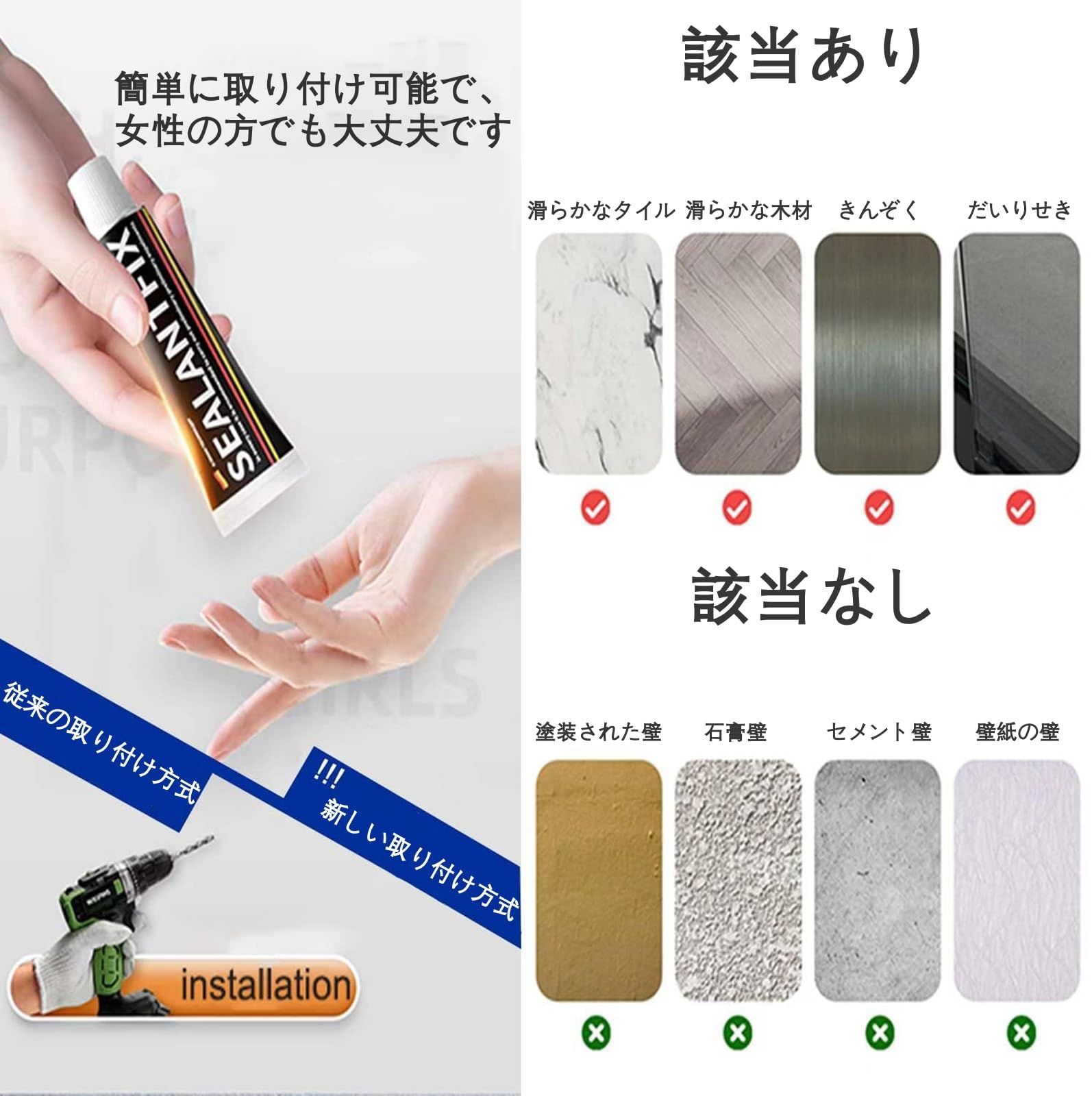 適用範囲:どの家族でも使用でき、玄関にも、居間にも、バスルーム、キッチン台所にも、洗面所にも、オフィスにも、どんな場所にもフィット ご注意:接着剤を使用してインストールする場合は、インストール後48時間待ってから使用してください