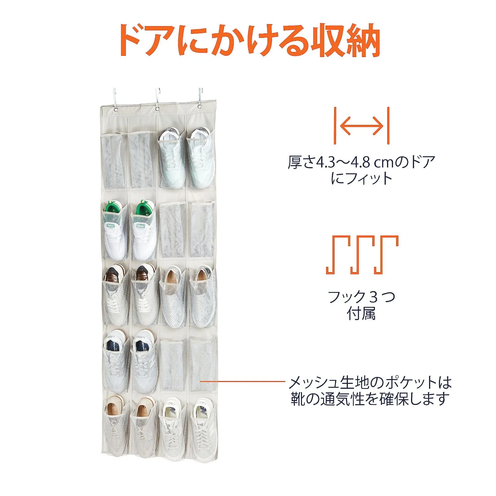 大きめの靴を10足、サンダルなら20足を貴重な床面を占有することなく収納