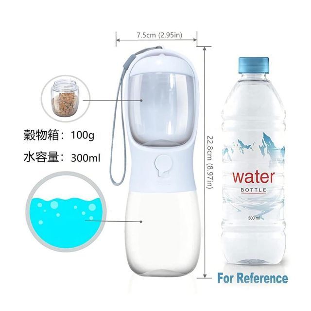 ◆商品名:犬散歩水ペット水筒ウォーターボトル犬みずのみ器ペットボトル犬グッズ水飲みおやつ給水器外出軽量ケースドライブ旅行ペット車用品みず持ち運び携帯猫水餌漏れ防止水300ml+穀物箱100g