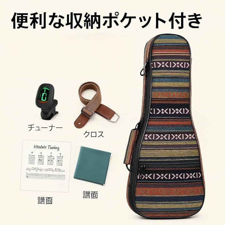 総合的に、本製品は持ち運びやすさ、耐久性、収納力、デザイン性、そしてサイズ展開の豊富さを兼ね備えたウクレレ専用ソフトケースです。