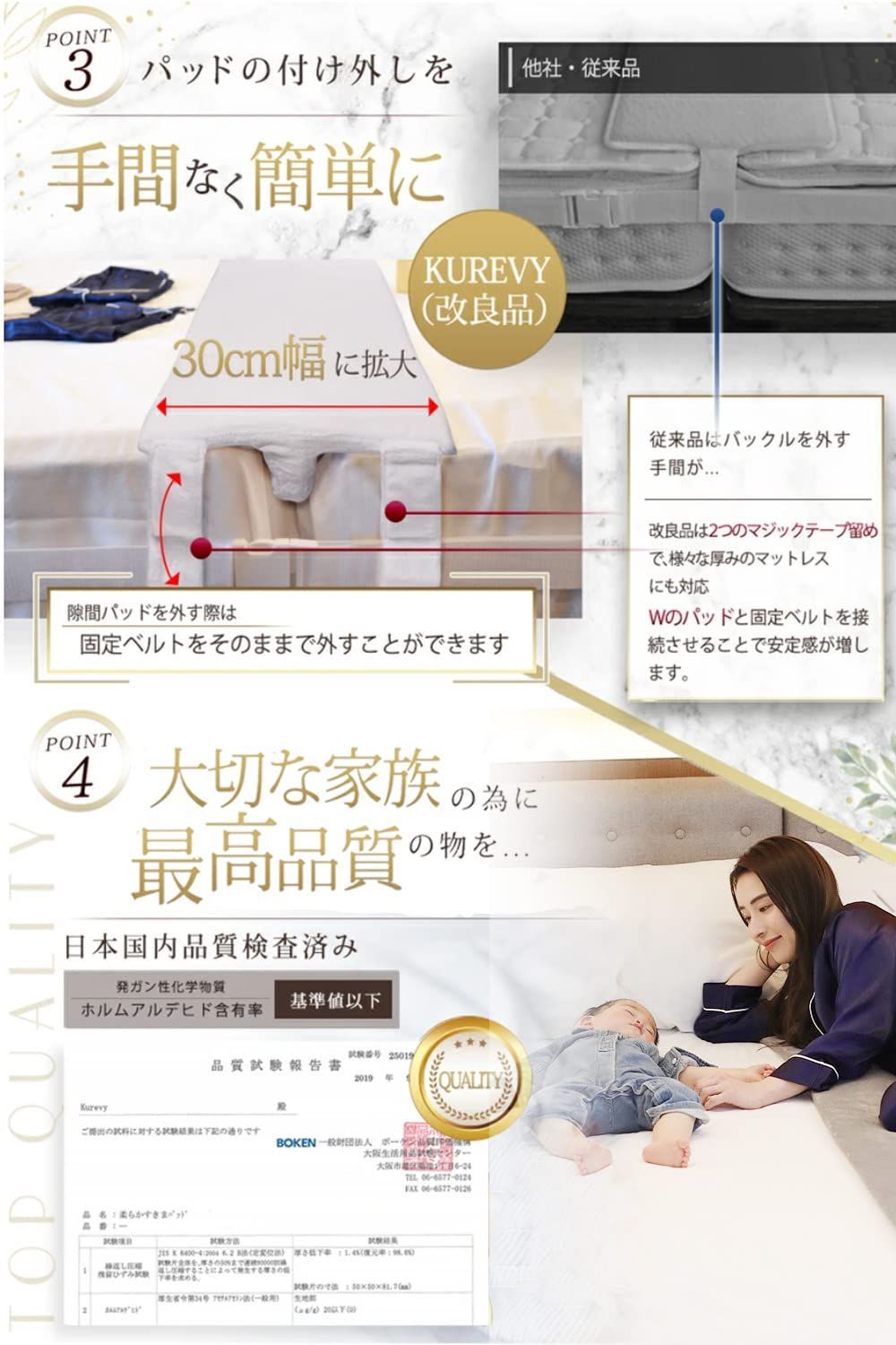 【商品構成】隙間パッドおよびマットレス固定用バンドのセット商品です。