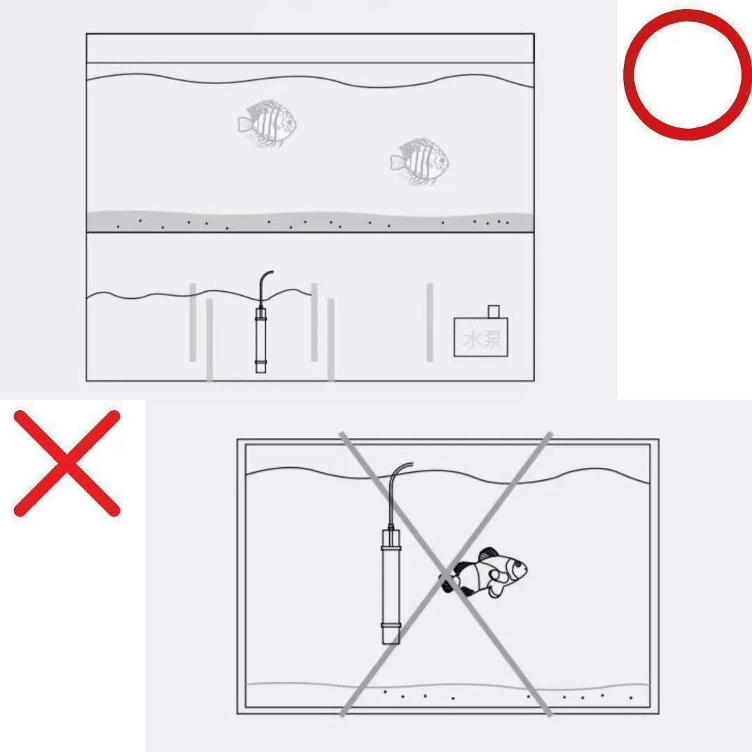 魚や人に直接UV光を当てないでください。