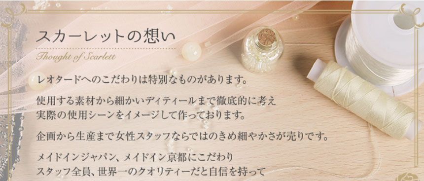 スカーレット製品は、日本でデザインされ、日本製の布(ユニチカ)を使用し、