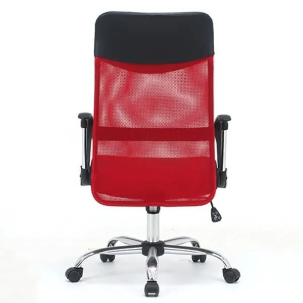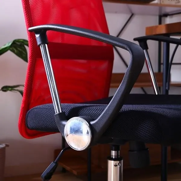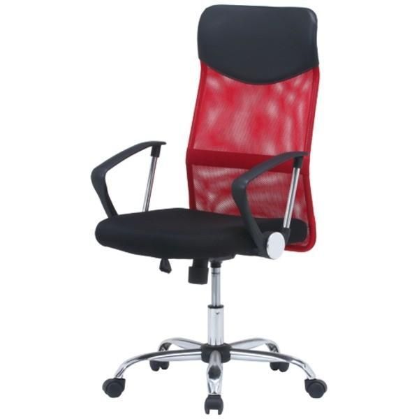 商品名:オフィスチェア デスクチェア 約幅60cm レッド ガス圧昇降機能 肘付 キャスター付 メッシュハイバックチェア 在宅ワーク 組立品