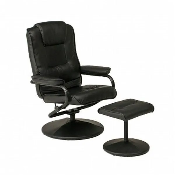 商品名:リクライニングチェア パーソナルチェア 約幅78cm ブラック オットマン付き 無段階式 スチール 合皮 リビング 在宅ワーク