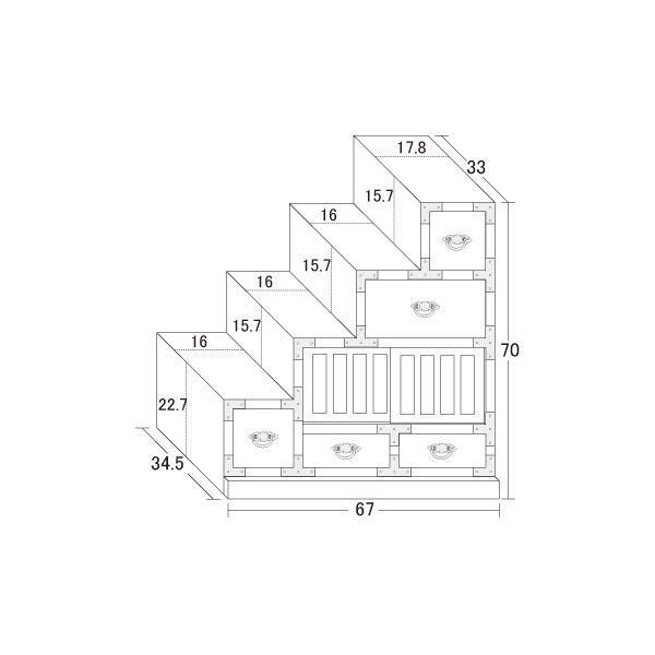 商品名:民芸調タンス/階段箪笥 〔左下がり/幅67cm〕 木製(桐) 〔完成品〕