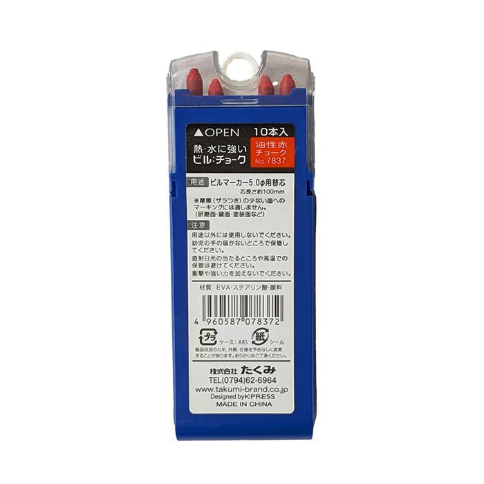 品 名 たくみ ビルチョーク 油性赤チョーク NO.7837 10本入り