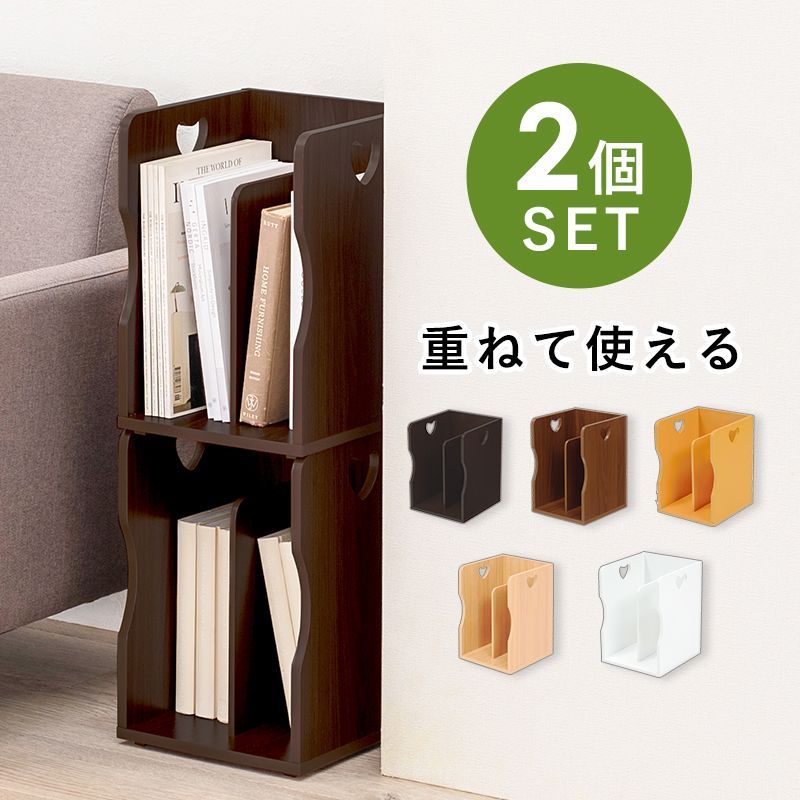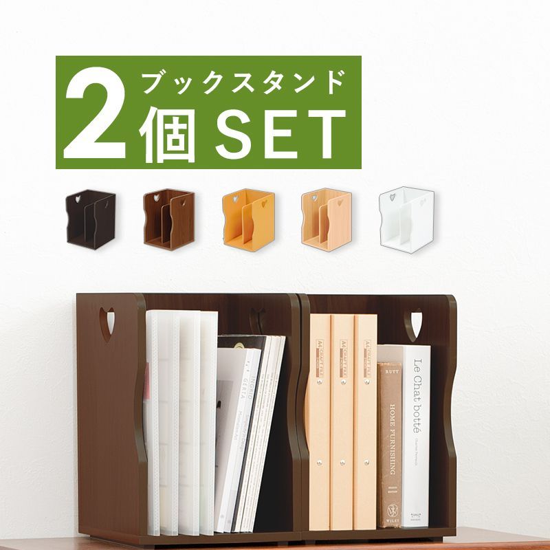 【商品説明】 ハートのデザインが可愛いナチュラルなブックスタンド。仕切りが付いて本・雑誌をしっかり収納!重ねて使えます。