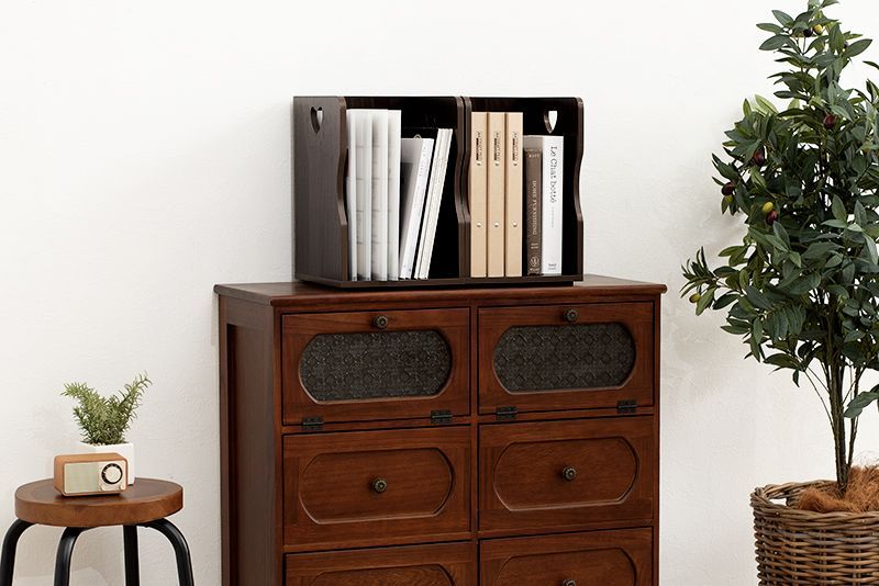 【商品説明】 ハートのデザインが可愛いナチュラルなブックスタンド。仕切りが付いて本・雑誌をしっかり収納!重ねて使えます。