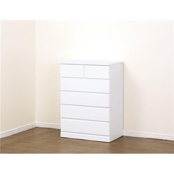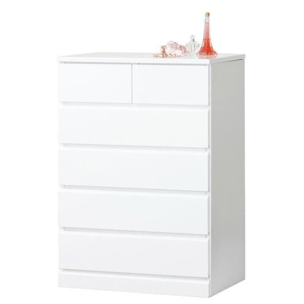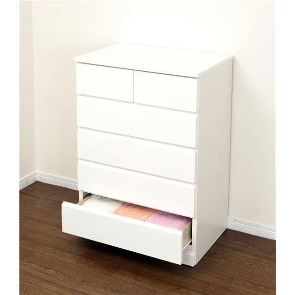 商品名:シンプルハイチェスト/収納タンス 〔5段〕 幅60cm 『シャイン』 スライドレール式引き出し ホワイト 〔完成品〕