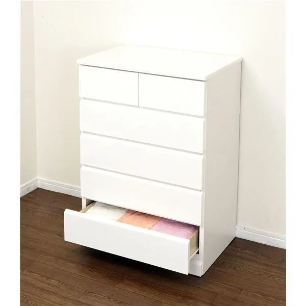 【5段】 幅60cm 『シャイン』 スライドレール式引き出し ホワイト