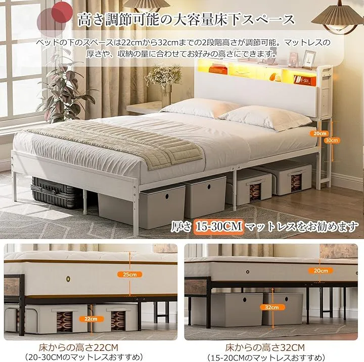 「2段階高さ調整で、床下をまるごと収納スペースに。」ベッドフレームの高さは22cmまたは32cmの2段階で調節可能。