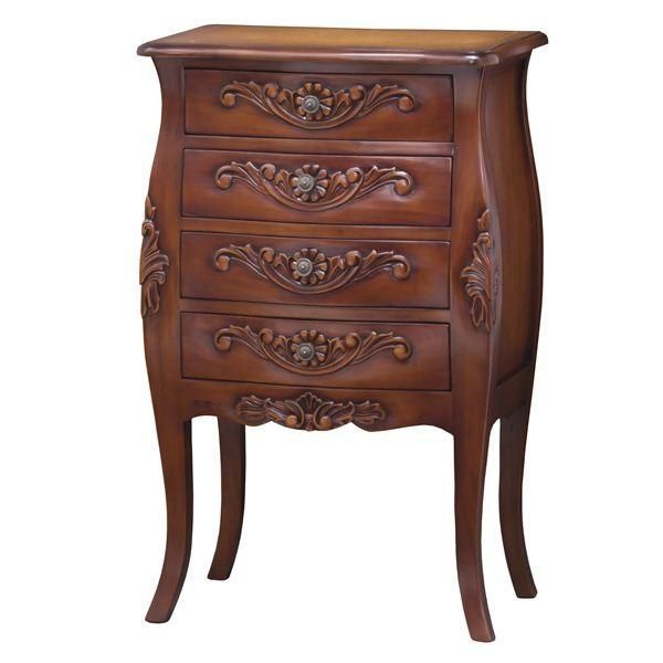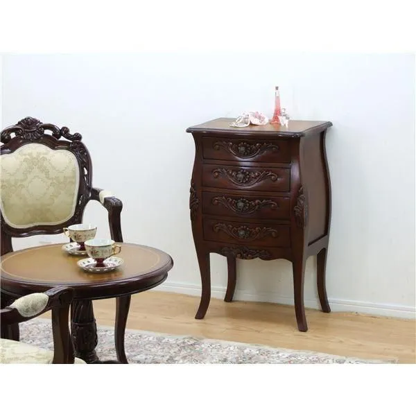 商品名:アンティーク調チェスト 〔4段 ブラウン〕 幅55cm 木製/マホガニー 引き出し付き 『コモ』 猫足 〔完成品〕