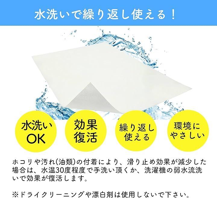汚れても、水洗いすることですべり止めの効果が復活します。