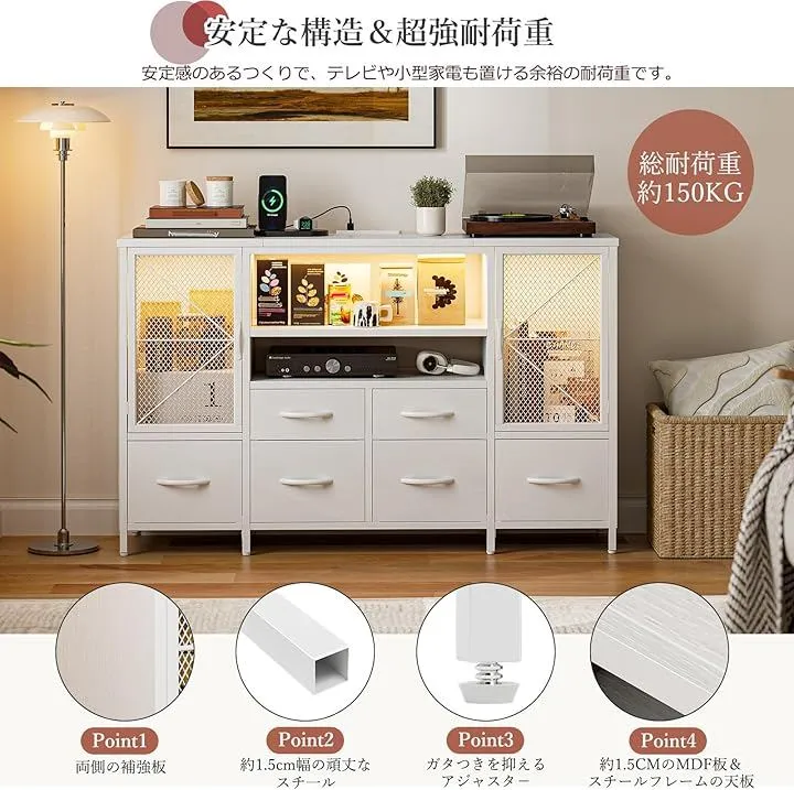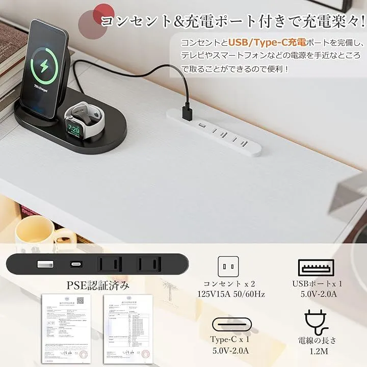 「充.電から収納まで大便利な設計」2段チェスト収納棚スペースにコンセントと充.電ポートを完備。