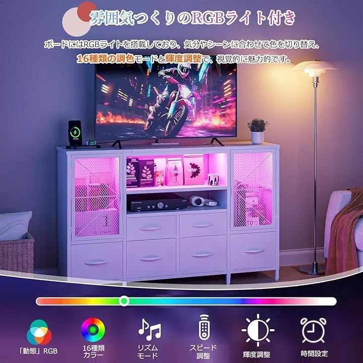 「雰囲気つくりのライト付き」チェストの棚ボードにはライトが付いており、パーティーやゲームがより楽しくなる雰囲気を一瞬で作ることが出来ます。