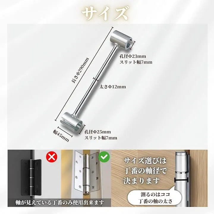 家庭用室内ドアから玄関・オフィス扉まで、一般的な丁番サイズに対応。