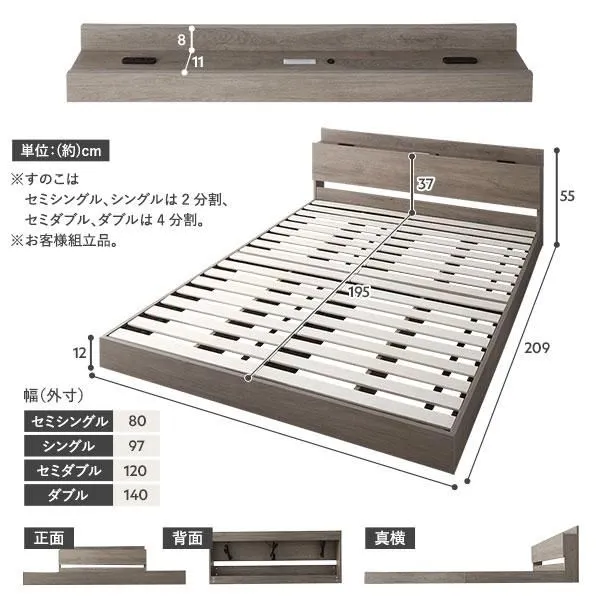 ※すのこは、セミシングル・シングルは2分割、セミダブル・ダブルは4分割