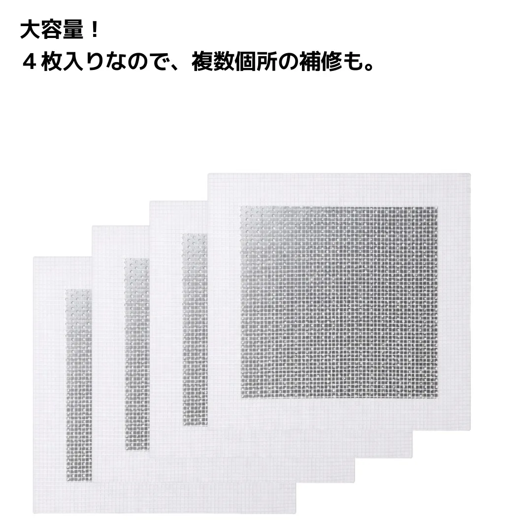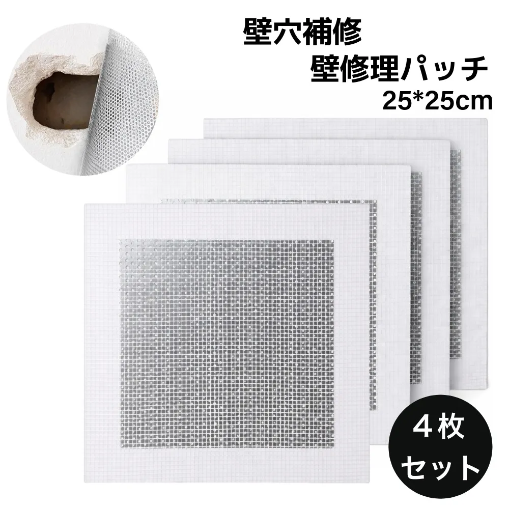 4枚セット 壁穴補修パッチ 25×25cm アルミメッシュ 壁修理パッチ 剥がして貼るだけ DIY 壁 穴 ひび割れ 補修シート