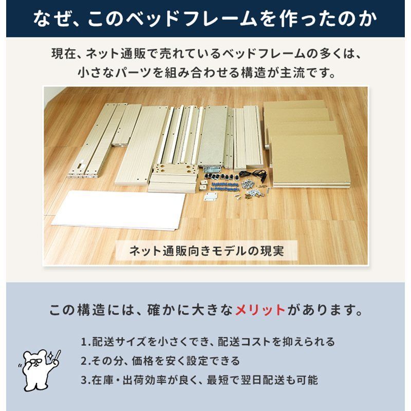 本商品は、組立設置込みでお届けするベッドフレームです。