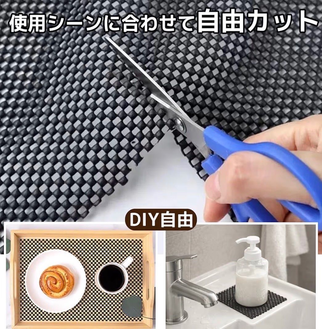【多用途多機能】この滑り止めシートは車ルーフバッグ、キッチン・玄関マット、カーペットなどの下、またソファ・ベッド・ラグ・花瓶・車のトランクの下、食器棚・引き出しに敷くだけですべり止め効果が抜群です!カット可能でコースターとして使えます!保護パッドとして摩擦を減少、騒音やキズを防止できます!クッションとして机の角を包み、ご家族の安全を守ります!滑り止め、転倒防止、吸音、緩衝の機能が多い滑り止めシートです!