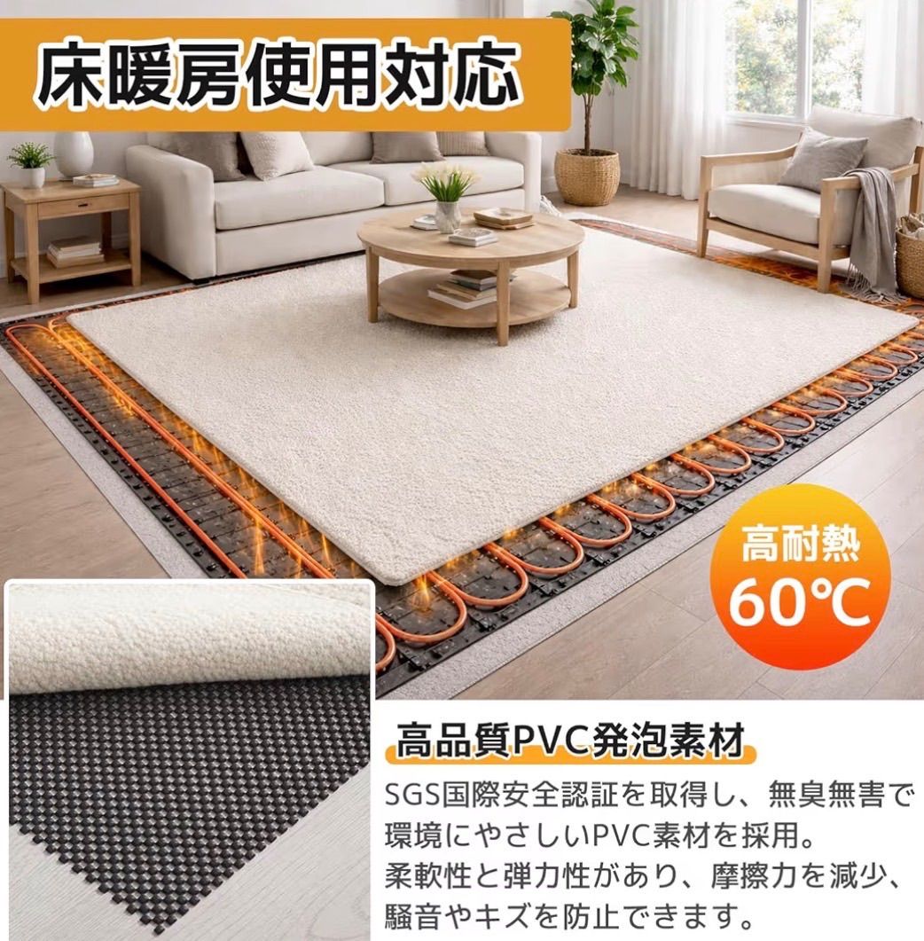 【簡単使用】 サイズ:160cm X 100cm 約3mm厚さ 十分な大きさ、ハサミで任意の大きさにカットでき、簡単にDIYをお楽しみいただけます。貼り付ける必要はありません。床暖房やホットカーペットにも対応。簡単に洗濯できます。優しく手で洗うことをお勧めします。繰り返して使えます。