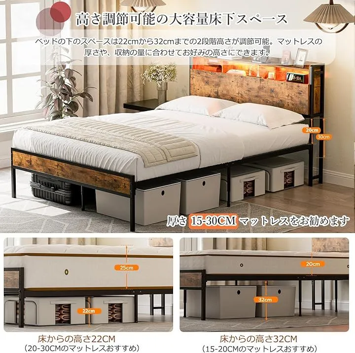 「ベッド高さ2段階調整で、床下をまるごと収納スペースに。」ベッドフレームの高さは22cmまたは32cmの2段階で調節可能。