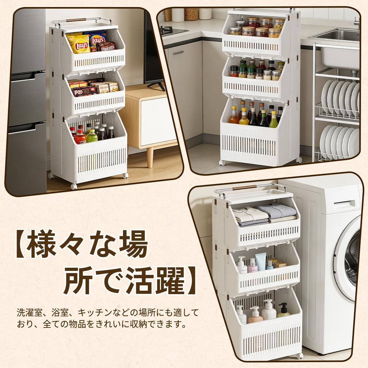 【4段大容量×通気設計|洗濯物もバス用品も清潔収納】4段バスケット構造で、衣類・タオル・洗剤・ボディケア用品までまとめて収納可能。通気孔付きデザインにより湿気がこもりにくく、カビ・ニオイ対策にも効果的です。