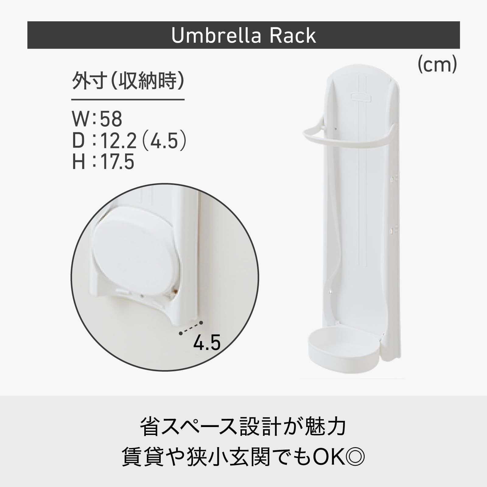 収納量はおよそ傘5本分(耐荷重約2.5kg)。
