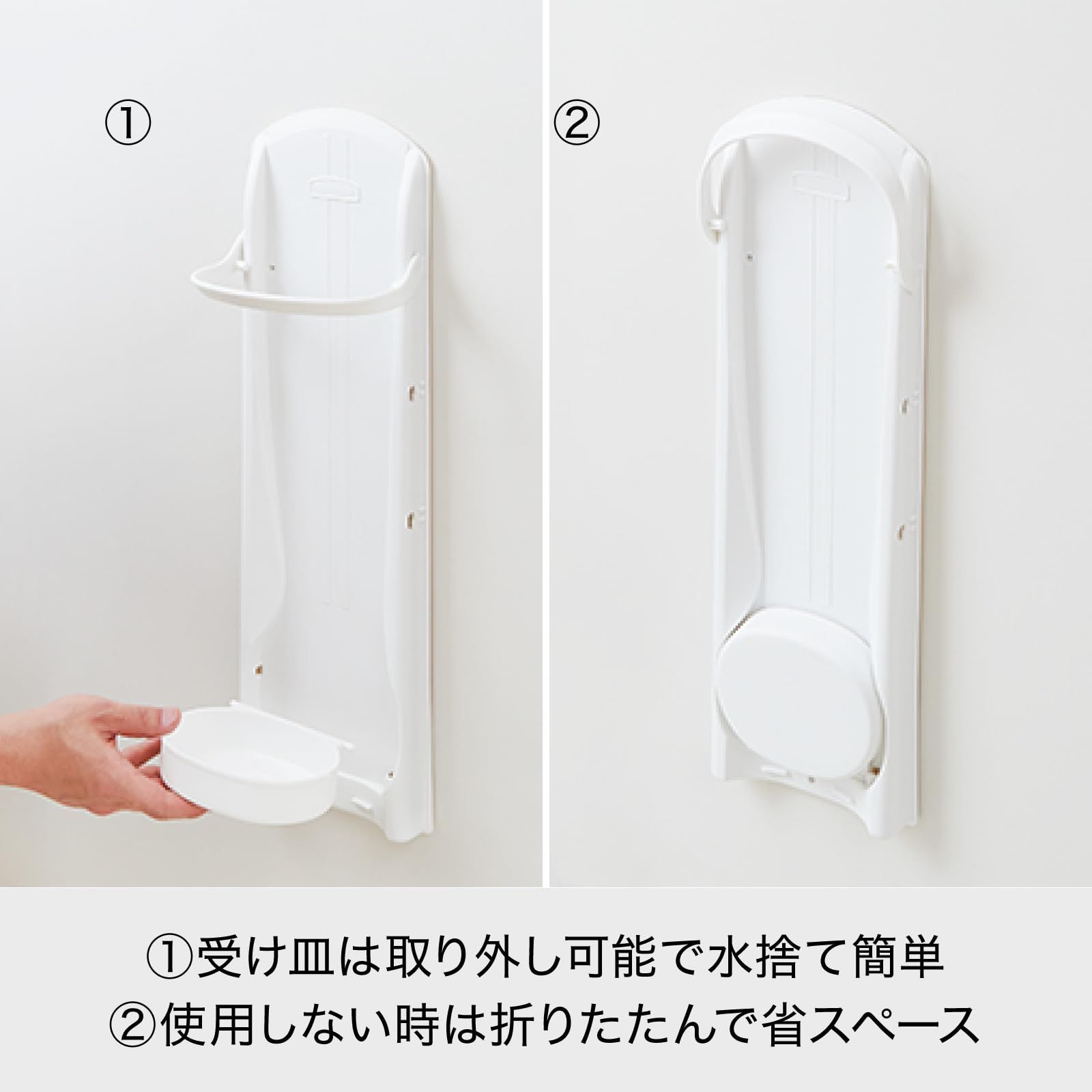 使わないときは傘受けとアームを折りたたんで省スペースに。