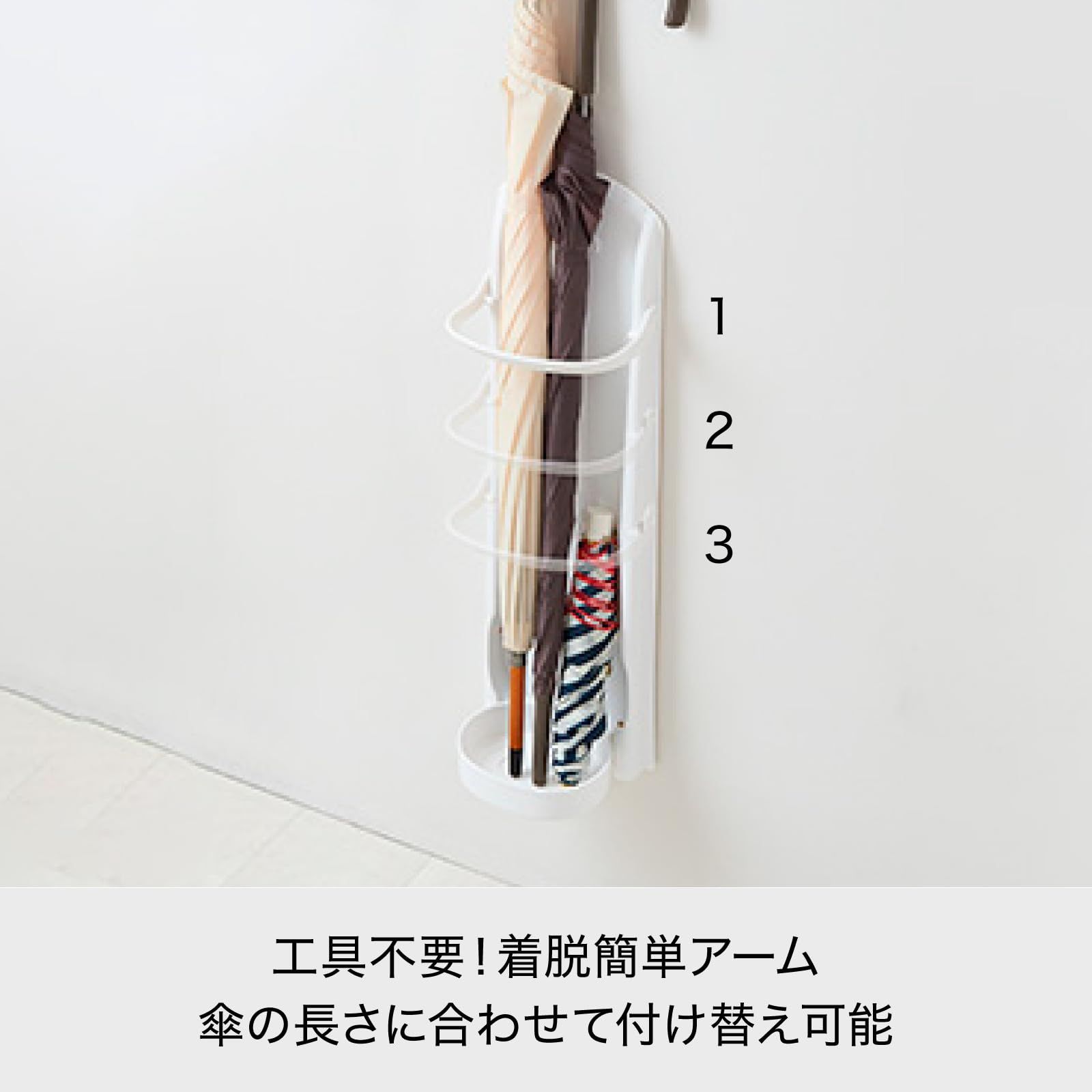 アーム位置は傘の長さに合せて3段階に調節可能。