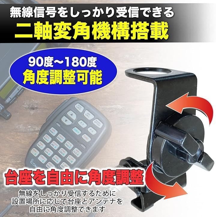 これにより、走行中や風の強い日でもアンテナが安定し、クリアな通信が可能です。