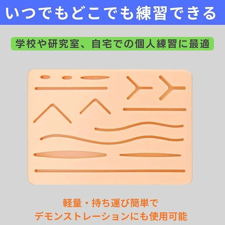 様々な傷の形状や深さを再現した練習用切開部位があり、実際の臨床現場で必要となる縫合技術を効果的に学べます。
