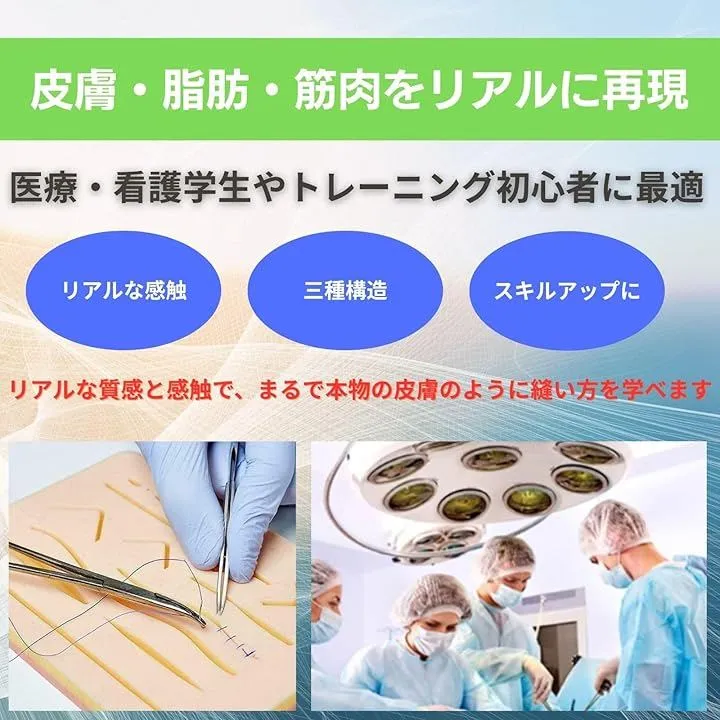 リアルな触感を再現した高品質シリコン製の人工皮膚モデルで、実践的なトレーニングが可能です。