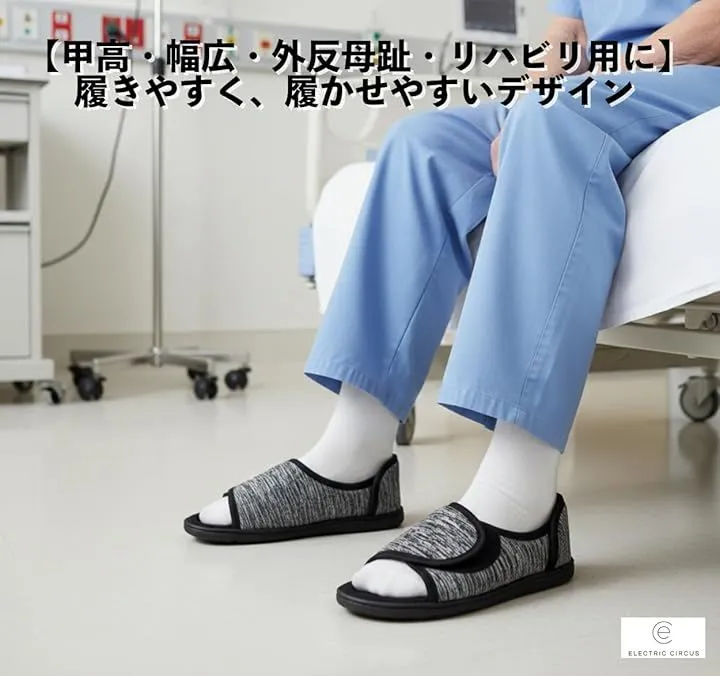 「甲高・幅広・リハビリ用に」怪我の足に・履きやすく、履かせやすいデザイン