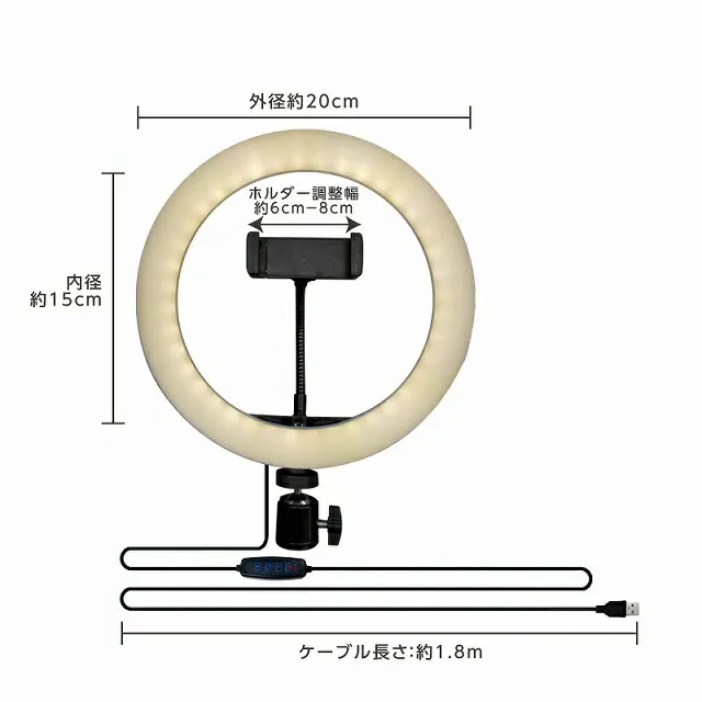 LEDリングライト本体、スマホホルダー、雲台、取扱説明書