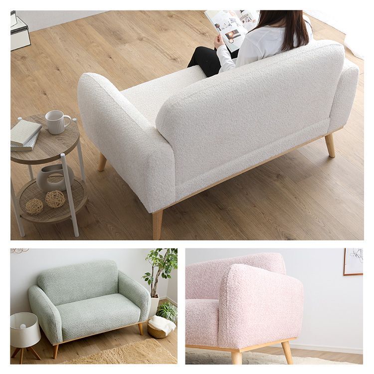 ハの字に開いた木脚がソファのアクセントになっており、よりかわいい雰囲気をプラスしています。