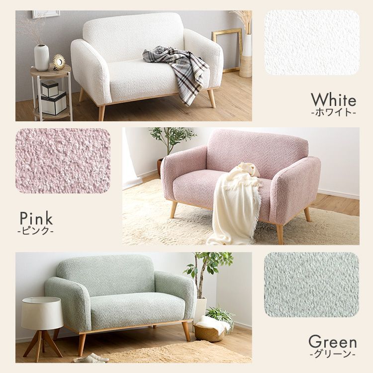 大人かわいいスタイルの2人掛けコンパクトソファです。