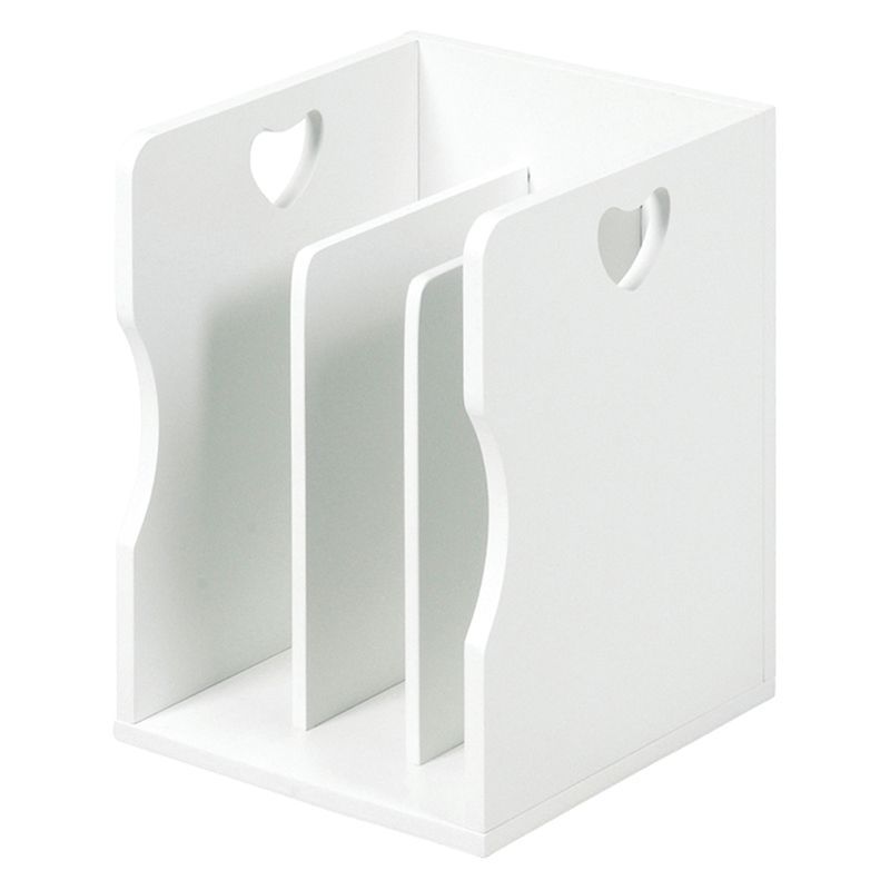 【商品説明】 ハートのデザインが可愛いナチュラルなブックスタンド。仕切りが付いて本・雑誌をしっかり収納!重ねて使えます。