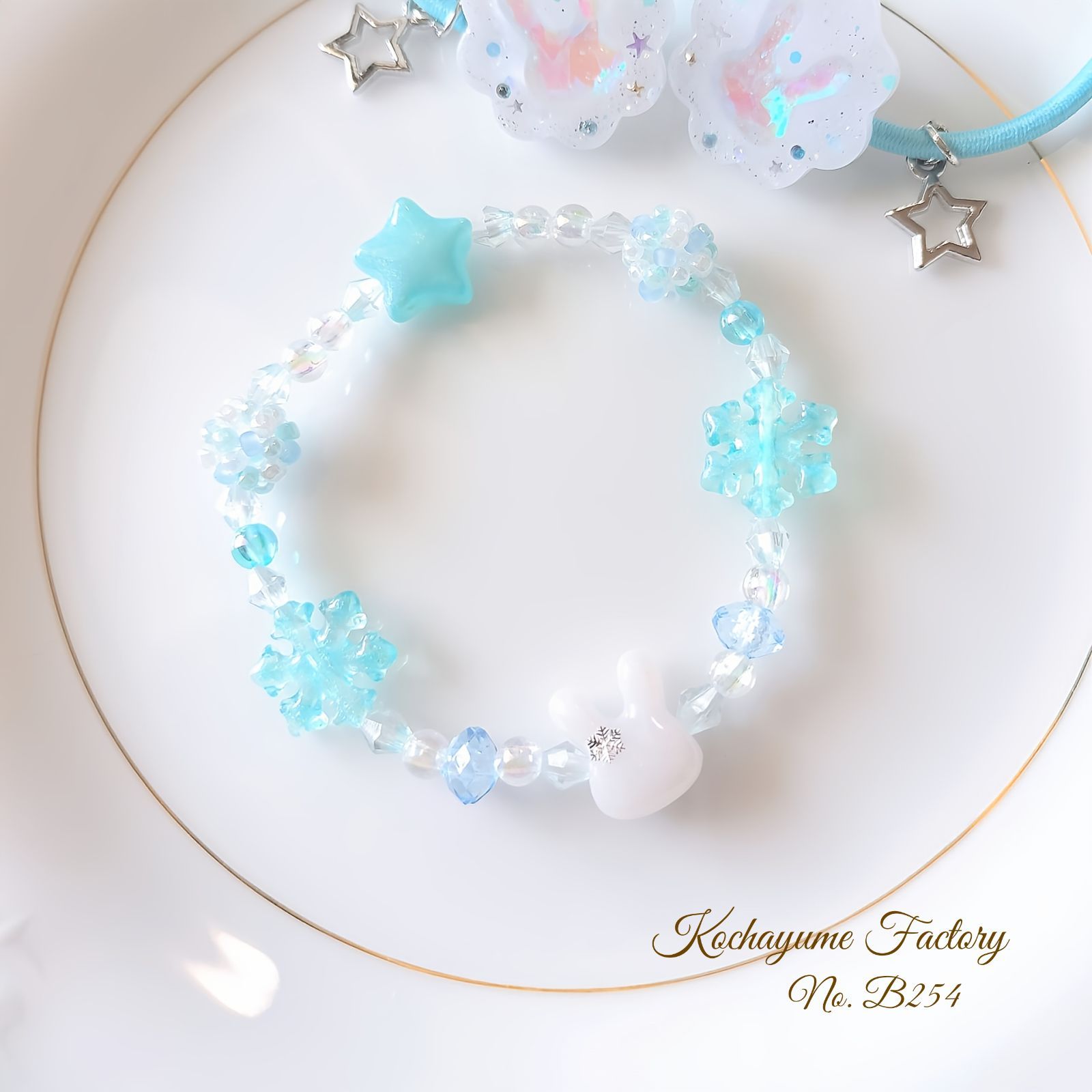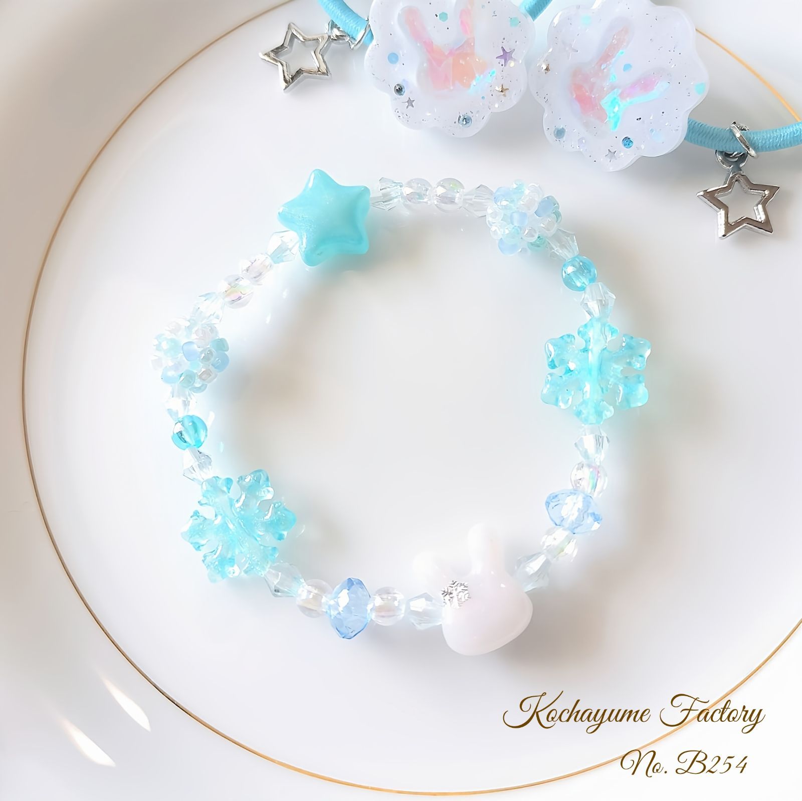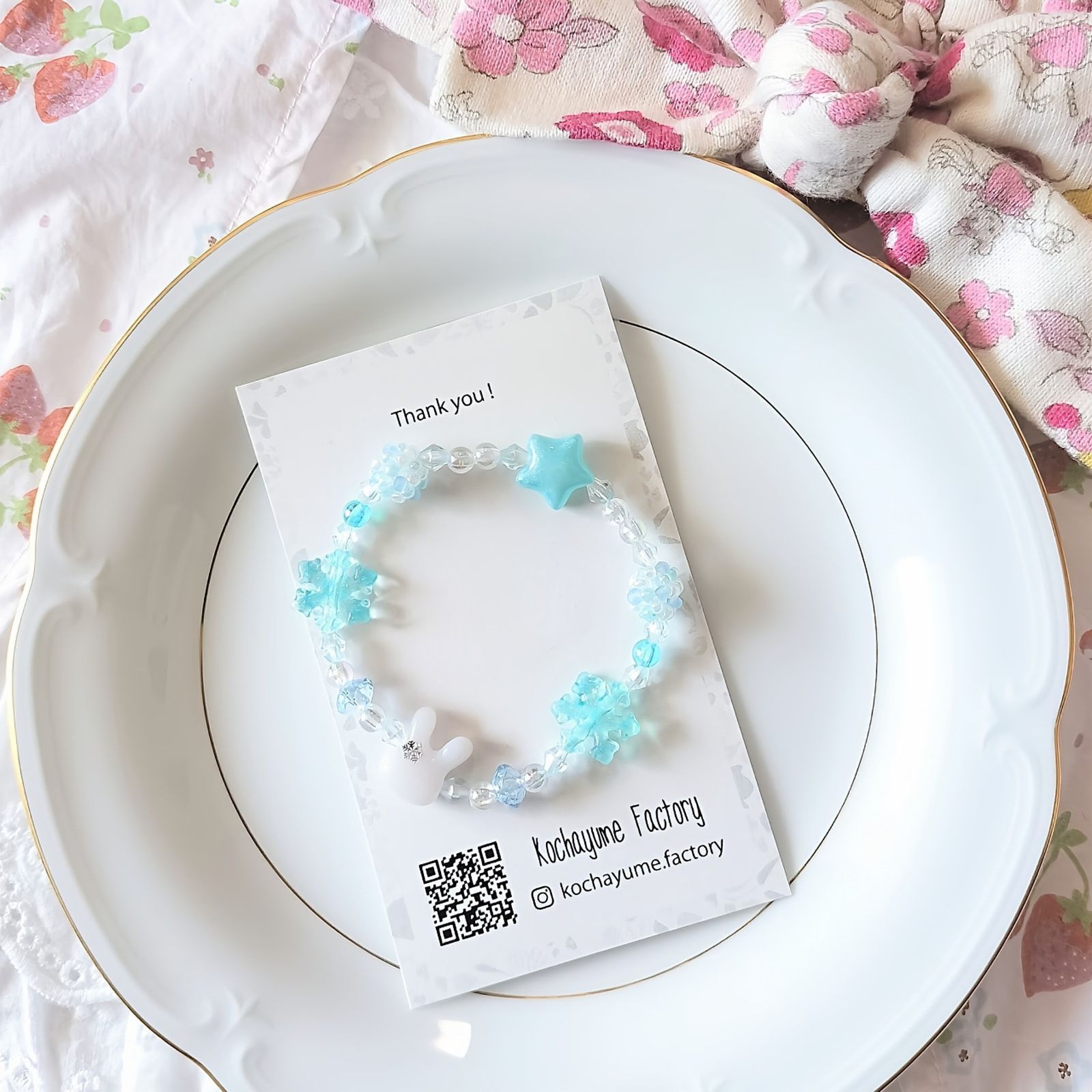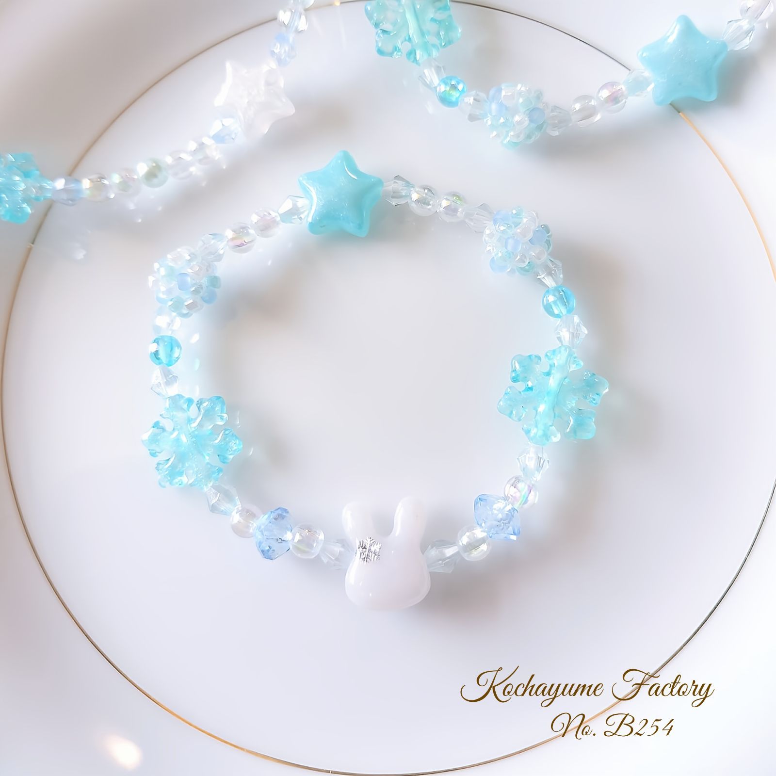 水色が好き、キラキラしたものが好き、うさぎちゃんが好き、ゆめかわが好き、雪が好き、女の子らしいコーディネートがお好きなお子さま、初めてのアクセサリーにもいかがでしょうか?