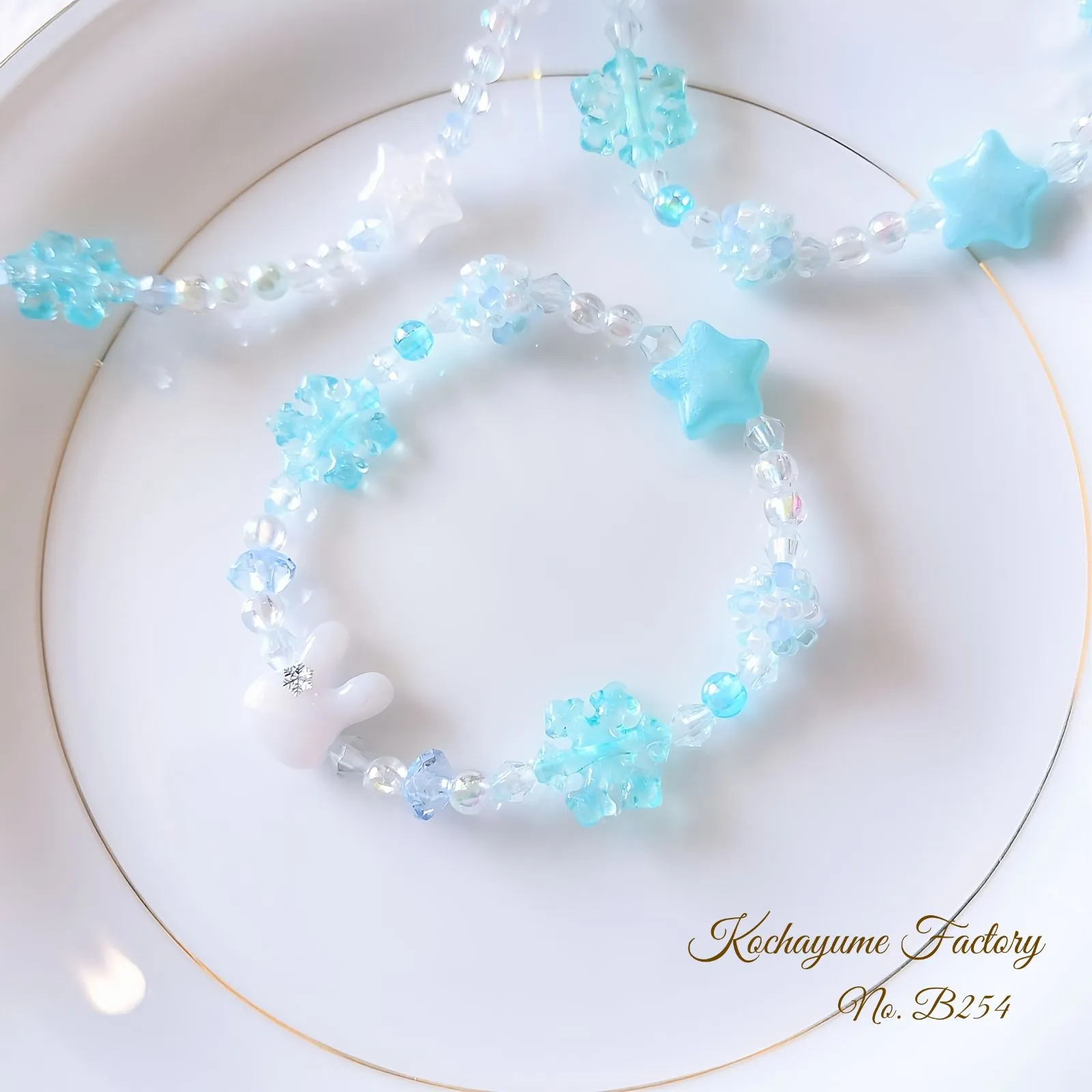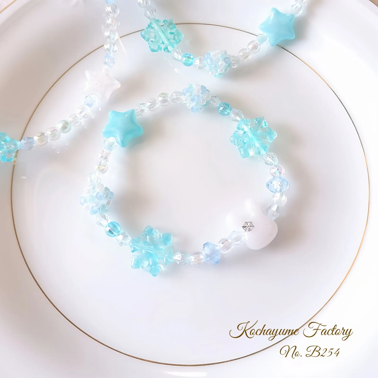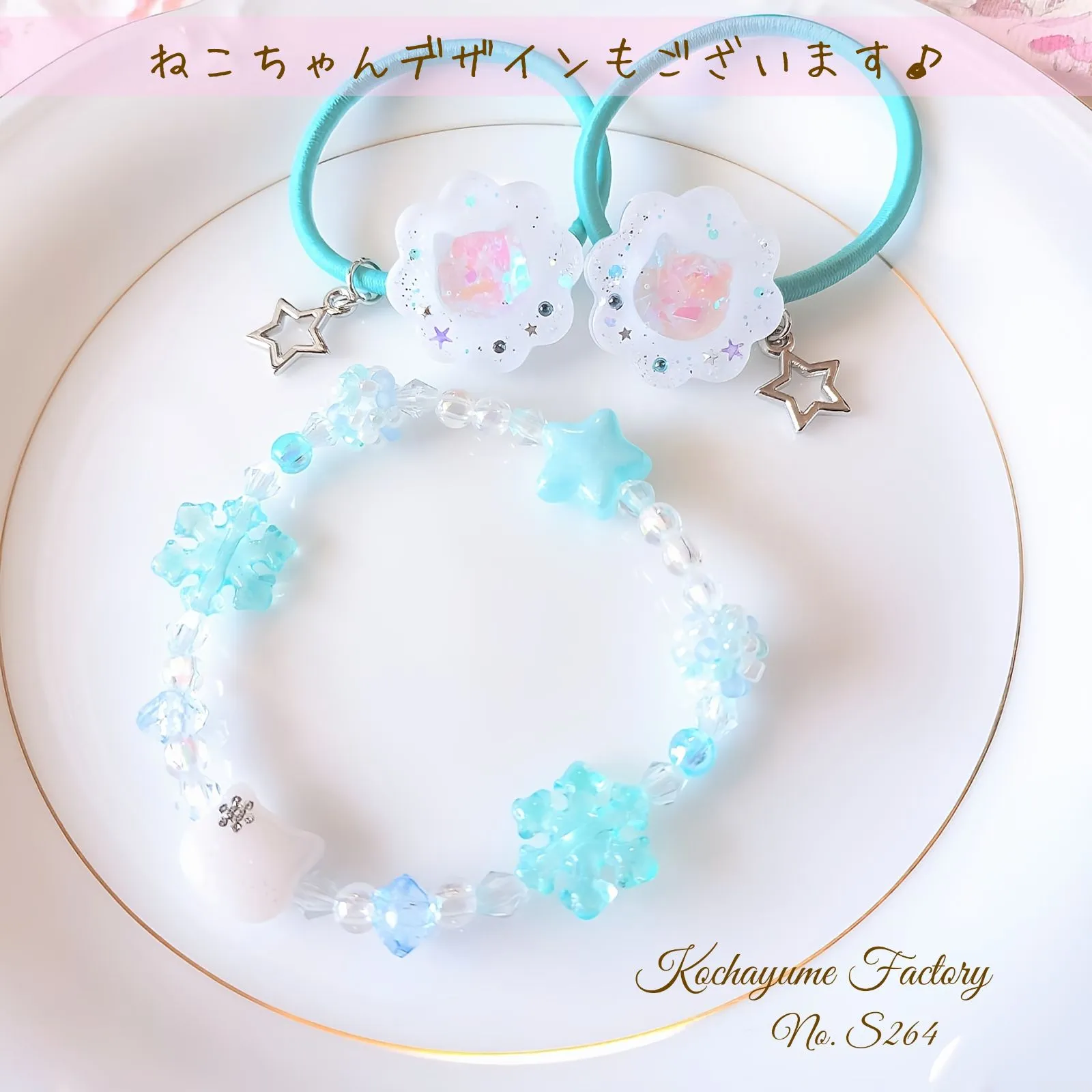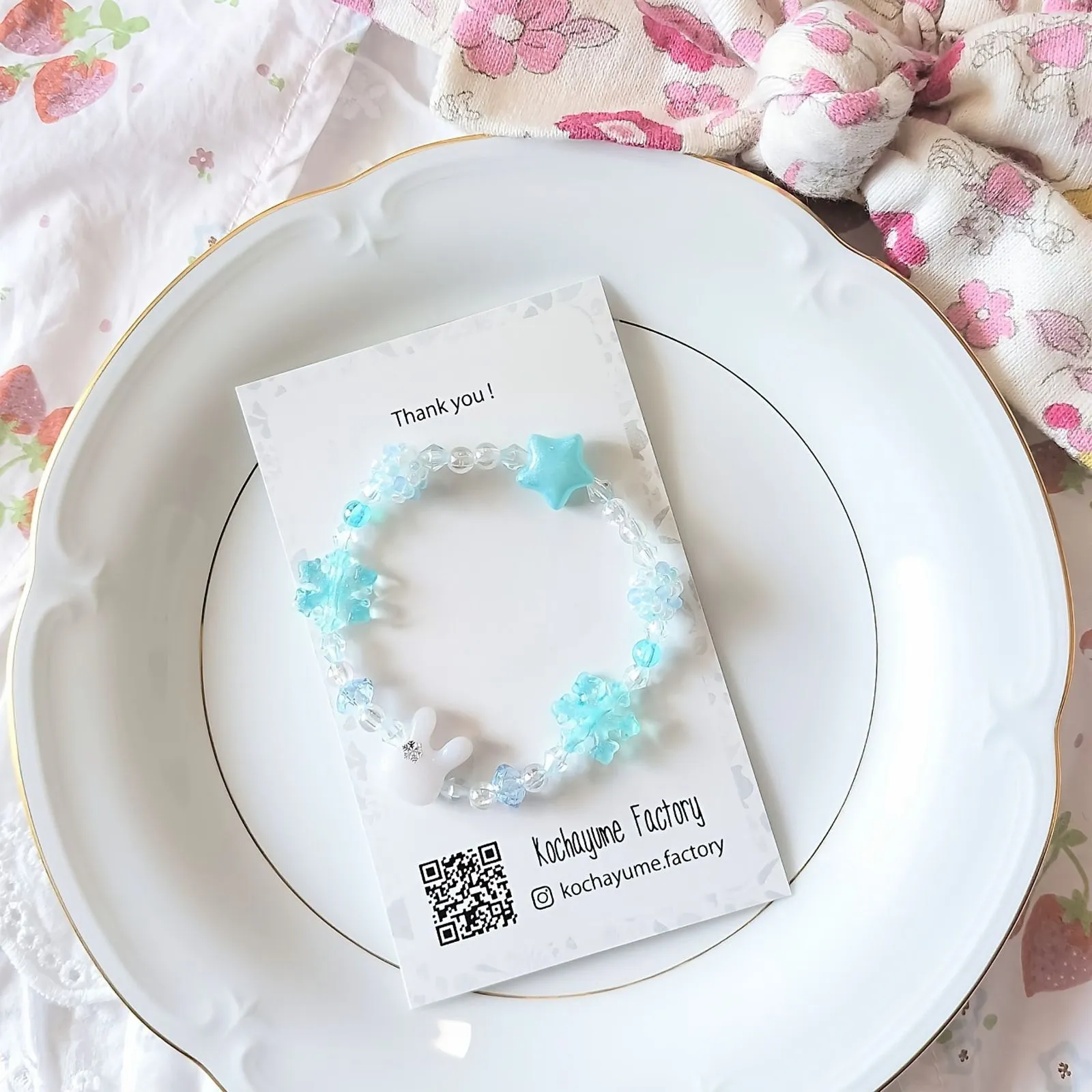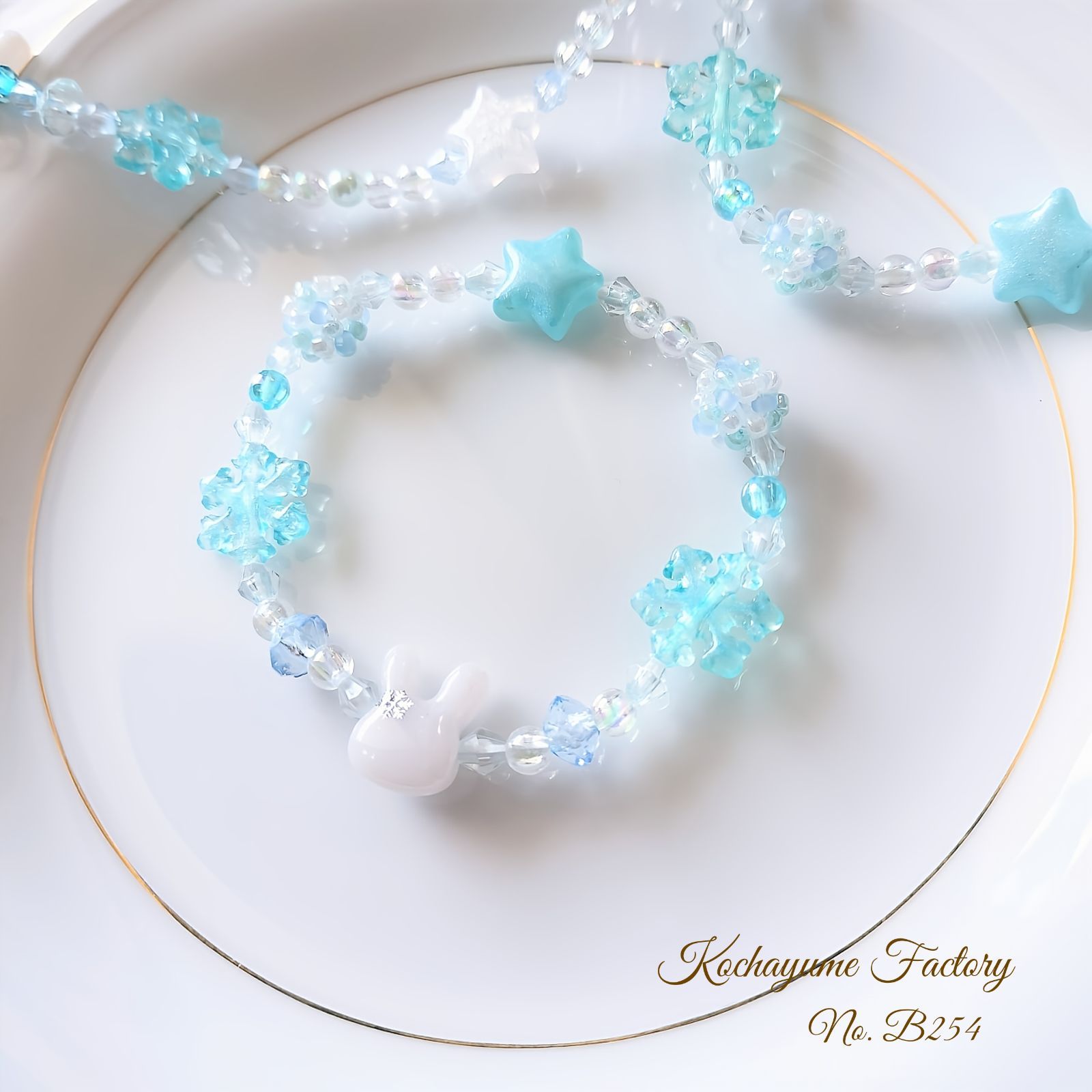 水色が好き、キラキラしたものが好き、うさぎちゃんが好き、ゆめかわが好き、雪が好き、女の子らしいコーディネートがお好きなお子さま、初めてのアクセサリーにもいかがでしょうか?
